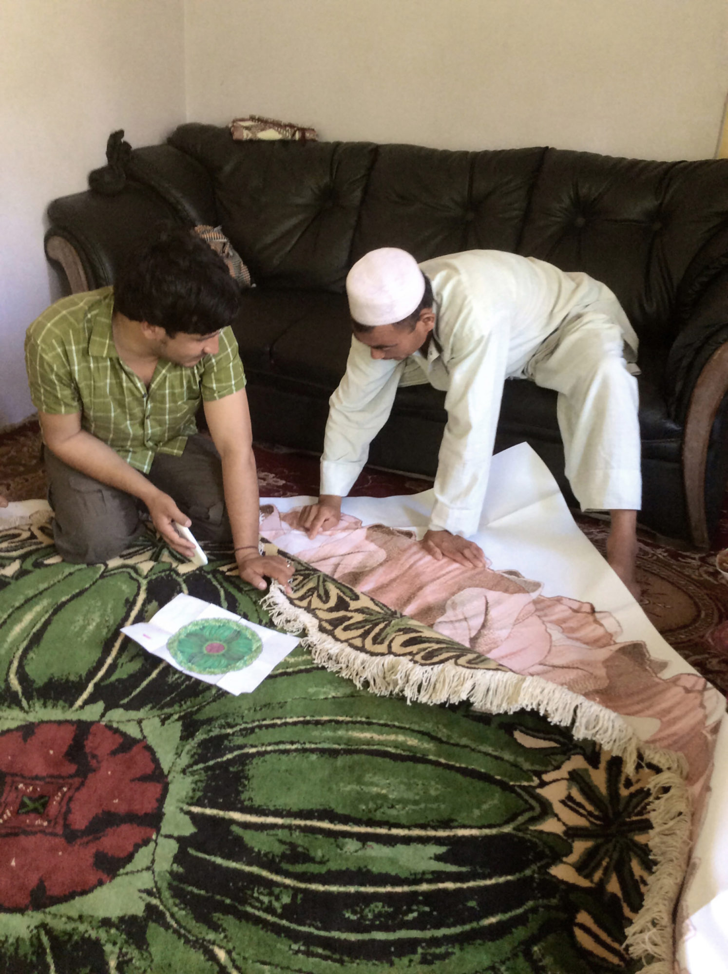Es wurden unter meinem grossen persönlichen Einsatz 3 Designerteppiche in Afghanistan hergestellt. Viele Gespräche wurden geführt. Es gab etliche unvorhergesehene Hindernisse zu überwinden. Die Teppiche reisten von Afghanistan nach Pakistan und wieder zurück nach Afghanistan. Viel Geduld und Verständnis für afghanische Arbeitsweise und Designverständnis mussten von allen Beteiligten aufgebracht werden.